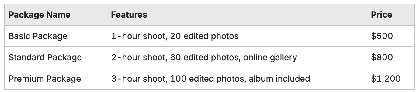 Comparing Features and Pricing of Popular Photography Packages